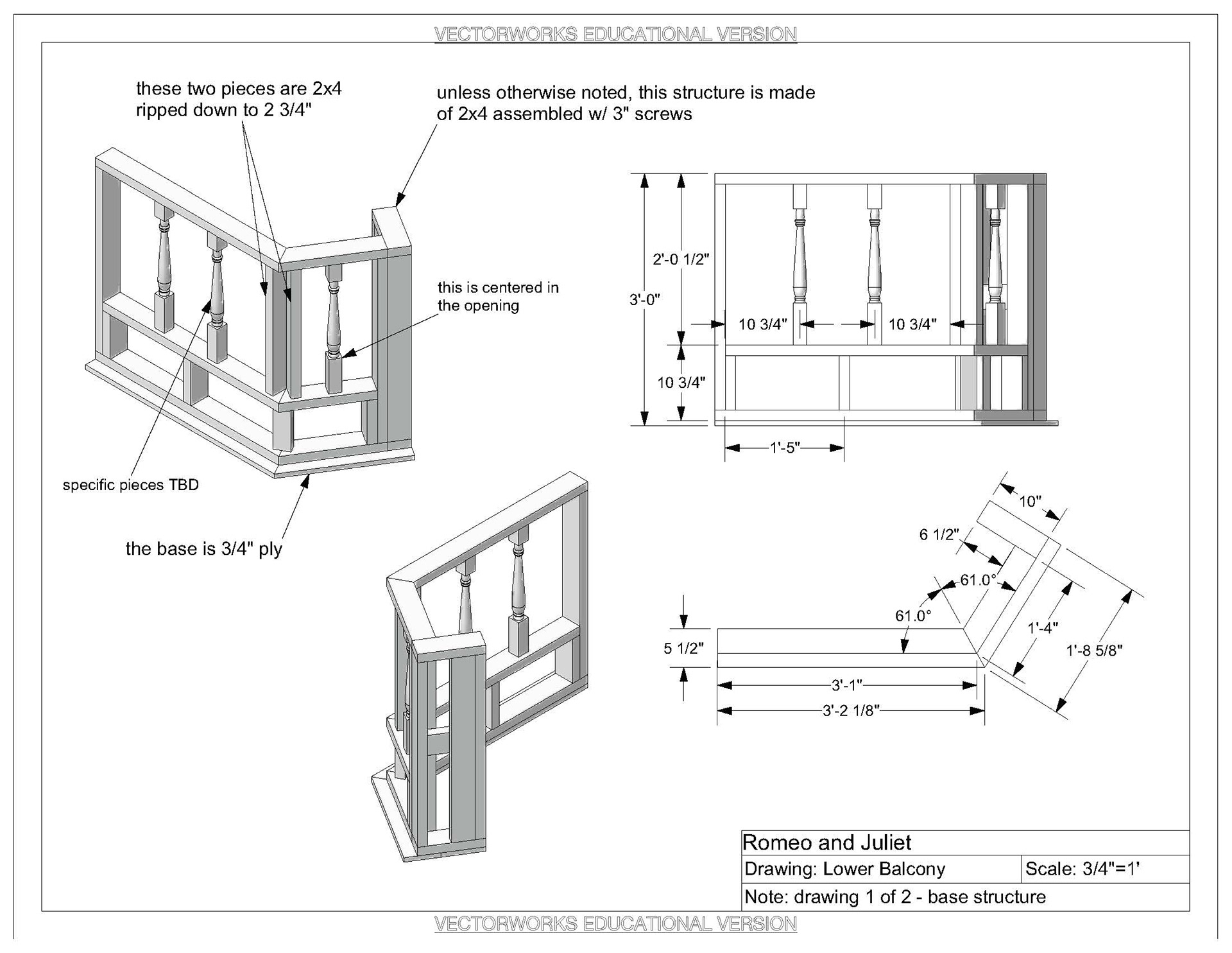 scenic design (as well as technical direction) for Moorpark College's theatrical production of Romeo & Juliet - rendering and draft samples done in Vectorworks