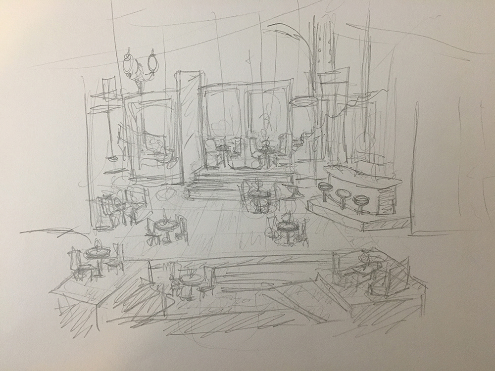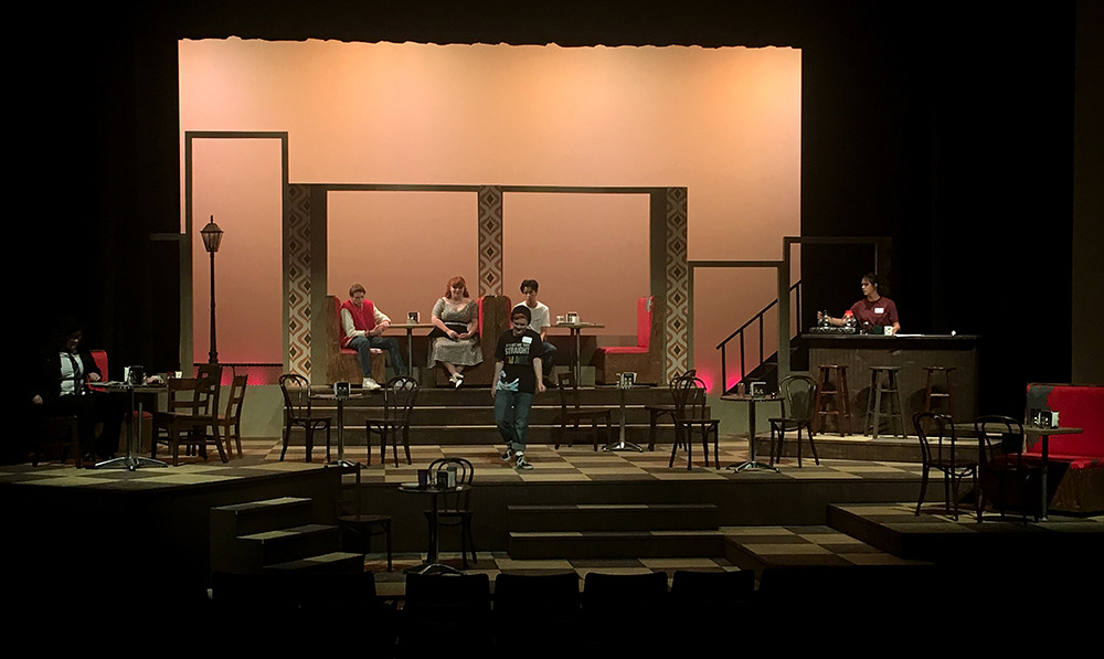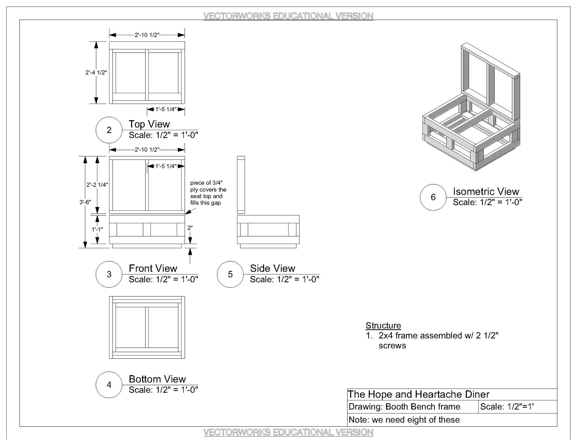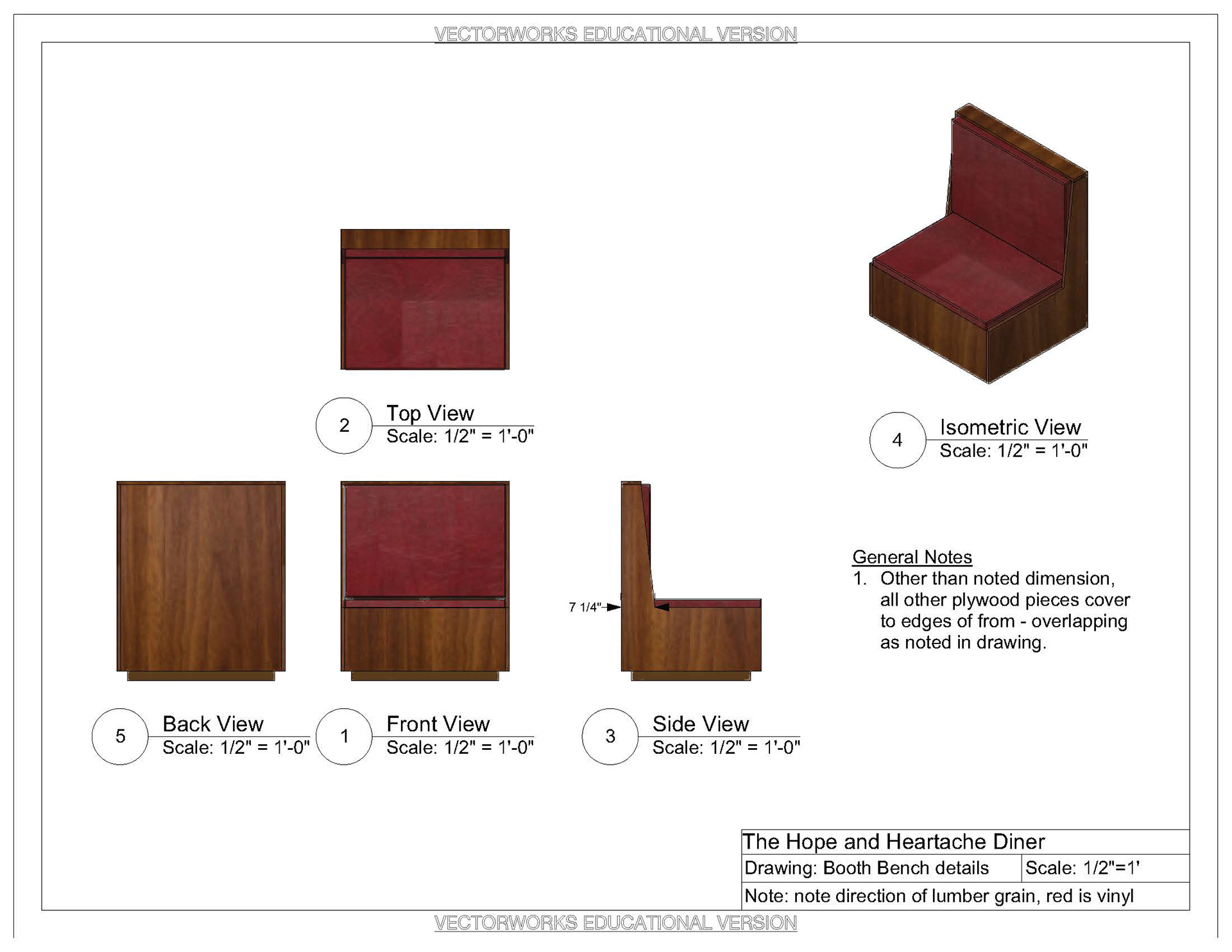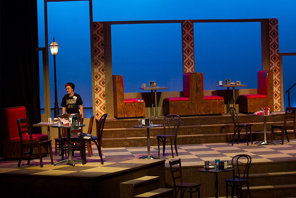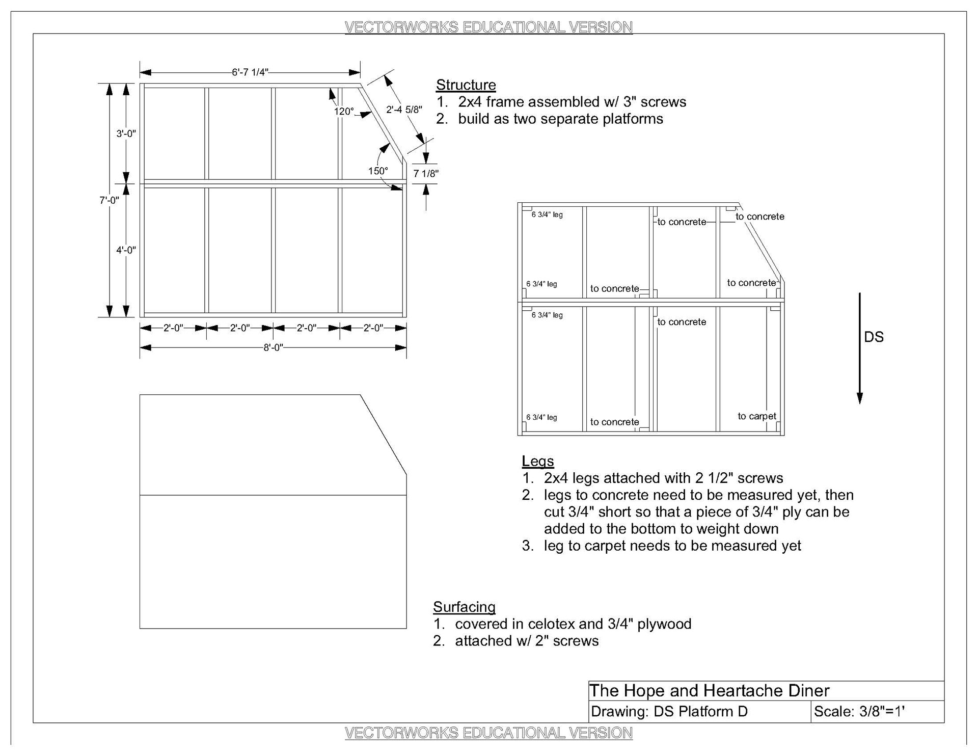 scenic design (as well as technical direction) for Thousand Oaks High School's theatrical production of The Hope and Heartache Diner - rendering and draft samples done in Vectorworks