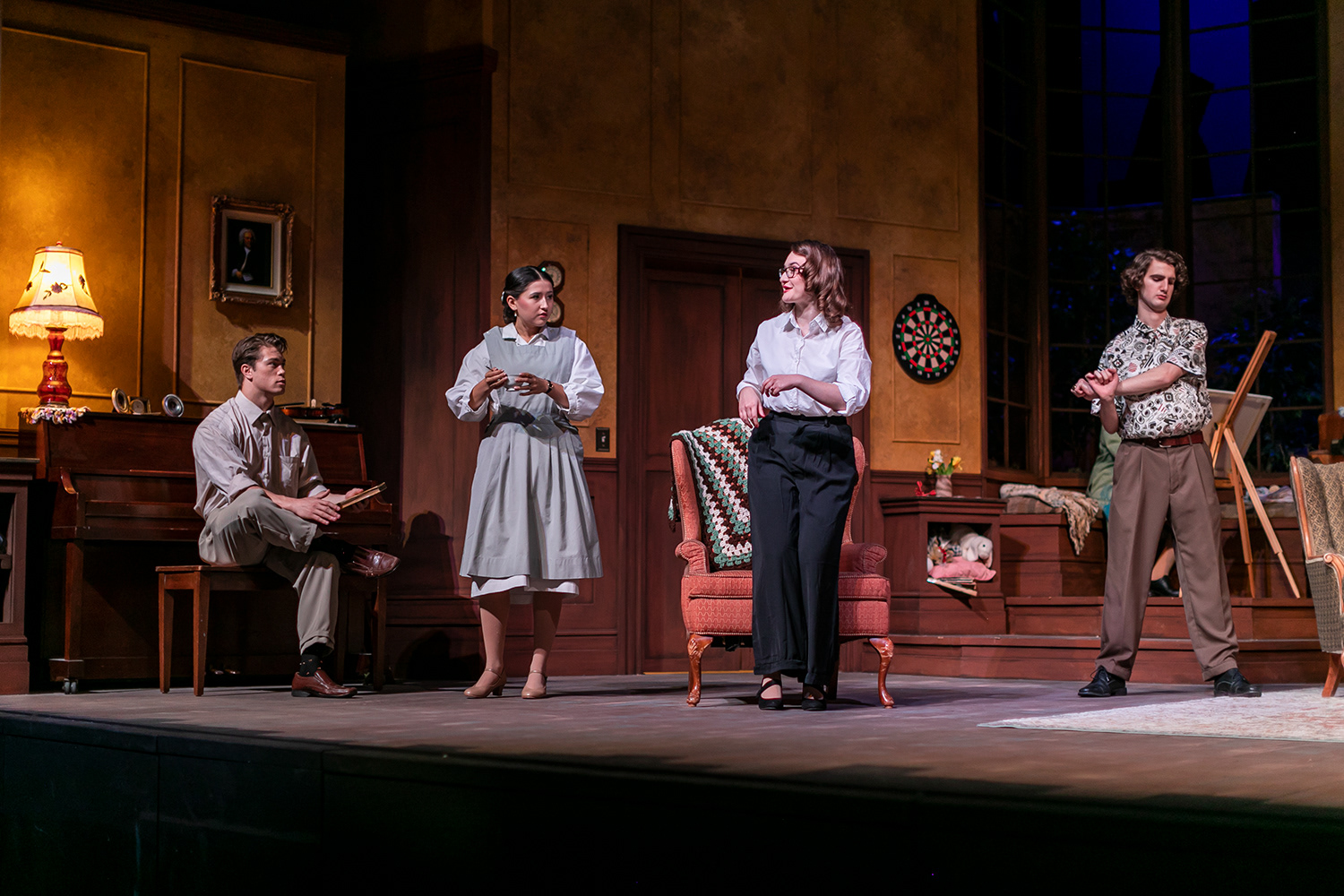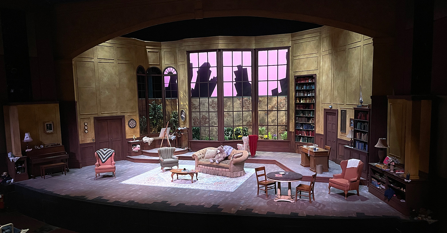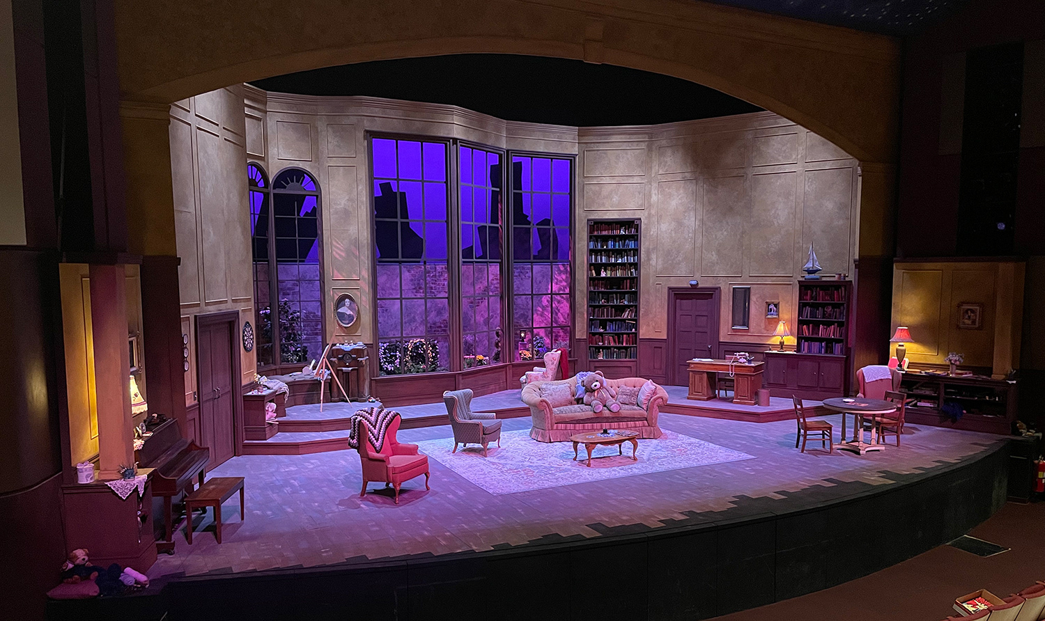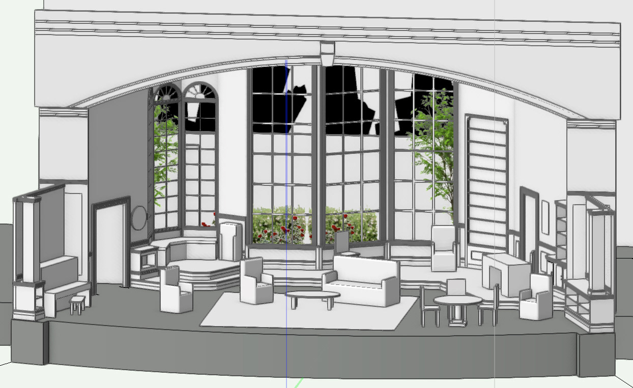 scenic design (as well as technical direction) for Moorpark College's theatrical production of The Curious Savage - production photos and a Vectorworks initial render