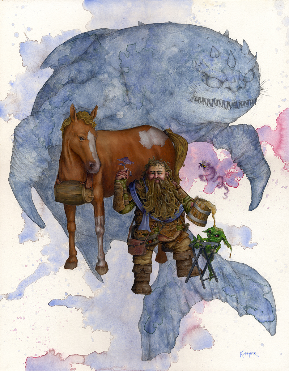 oil and watercolor on illustration board 15"x19" (original pencil drawing below)