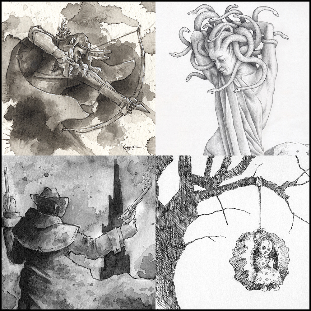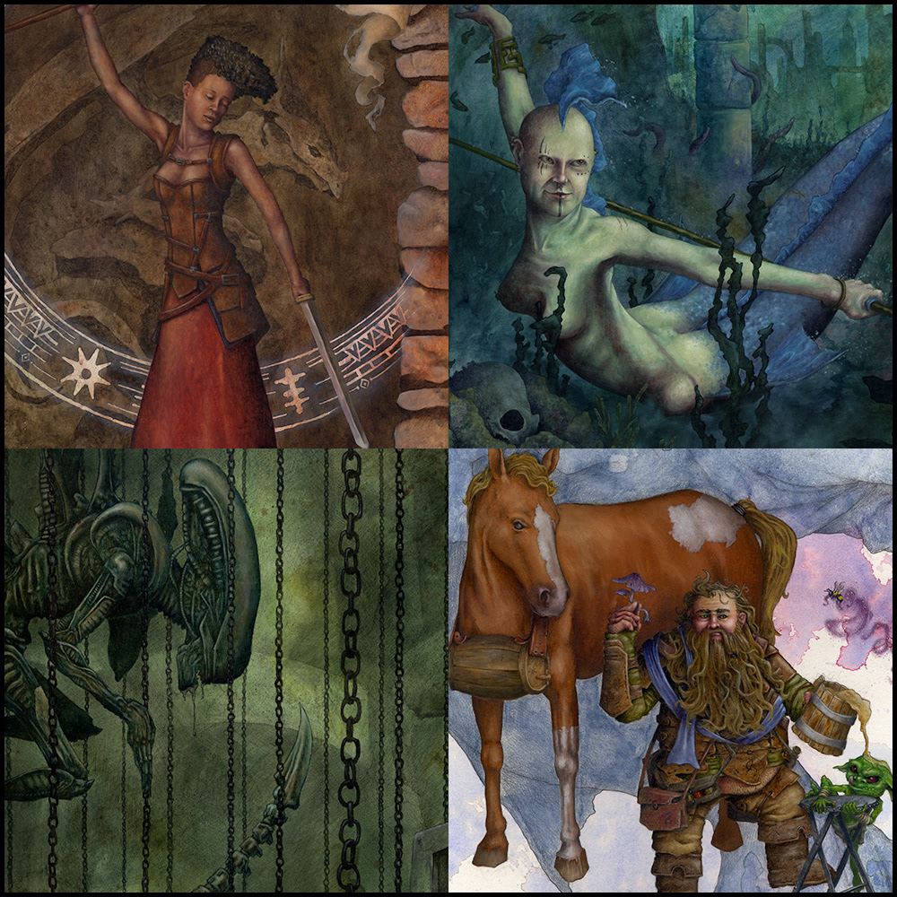sample of color illustrations - primarily in oil paints, but some acrylic, watercolor, and ink in places