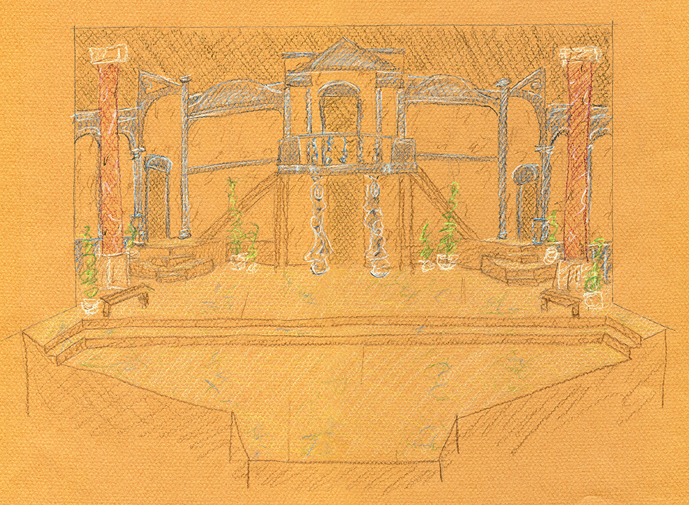 scenic design (as well as technical direction) for Moorpark College's theatrical production of Much Ado About Nothing