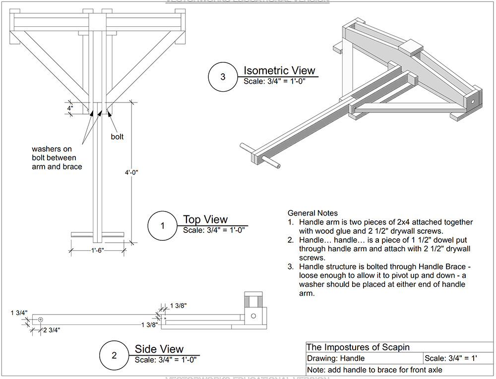 scenic design (as well as technical direction) for Moorpark College's theatrical production of The Impostures of Scapin - production photos, water color paintings for drops, and Vectorworks drafts